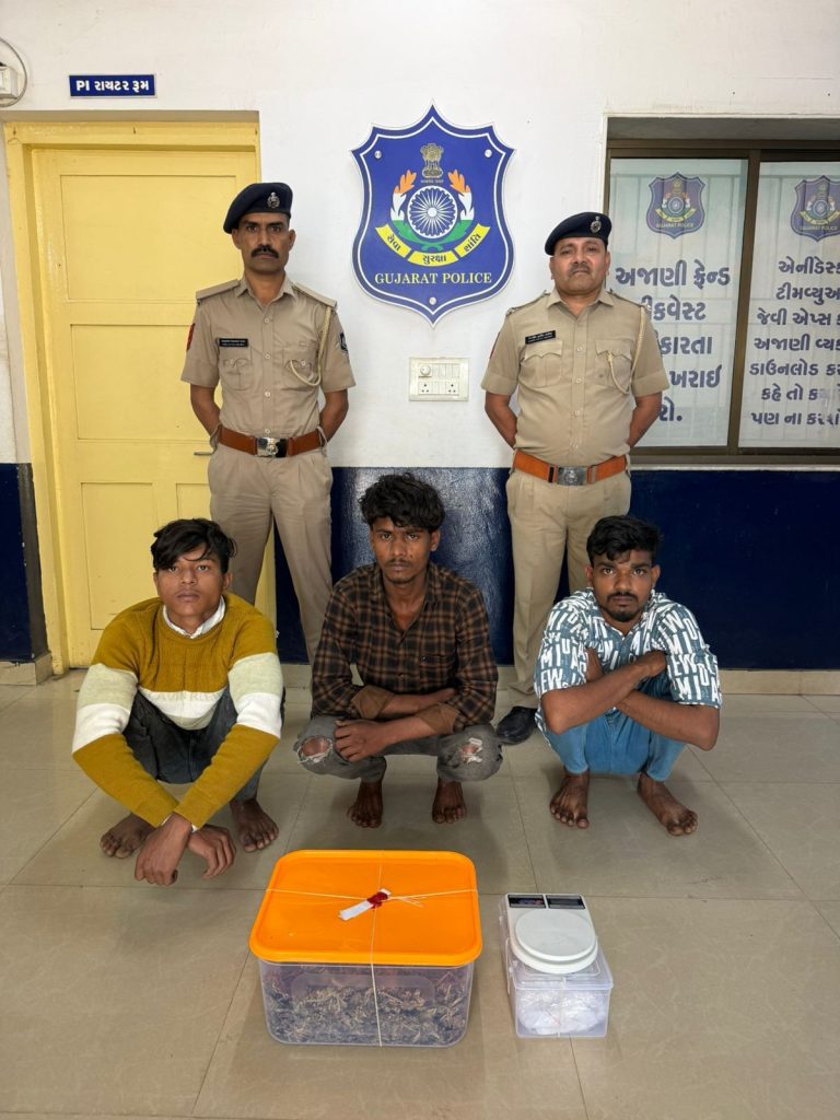 वलसाड जिले के डूंगरा पुलिस स्टेशन क्षेत्र अंतर्गत लवाछा इलाके में पुलिस ने बड़ी कार्रवाई करते हुए 2.095 किलोग्राम अवैध गांजा के जथ्थे के साथ चार आरोपियों को गिरफ्तार किया है। इस कार्रवाई में एक बालक को भी कानून के संघर्ष में पाया गया है।