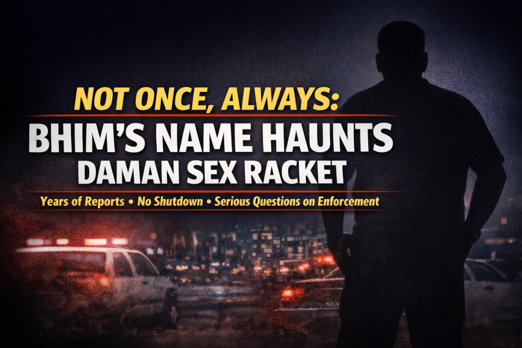 दमन में देह व्यापार की चर्चा एक-दो बार नहीं, बल्कि हमेशा ही ‘भीम’ नाम के इर्द-गिर्द घूमती रही है। स्थानीय सूत्रों के अनुसार, वर्षों से चल रहे इस कथित अवैध धंधे में भीम को एक प्रमुख चेहरा माना जाता है। हैरानी की बात यह है कि लगातार और बार-बार अख़बारों में नाम प्रकाशित होने के बावजूद भी उसके कथित नेटवर्क पर अब तक प्रभावी रोक नहीं लग पाई है, जिससे संरक्षण की चर्चाएं भी थमने का नाम नहीं ले रहीं।
